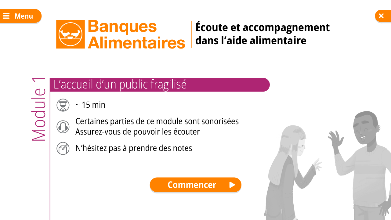 Illustrations, Design Graphique et Motion Design pour 5 modules de formation en ligne pour les bénévoles de la Banque Alimentaire